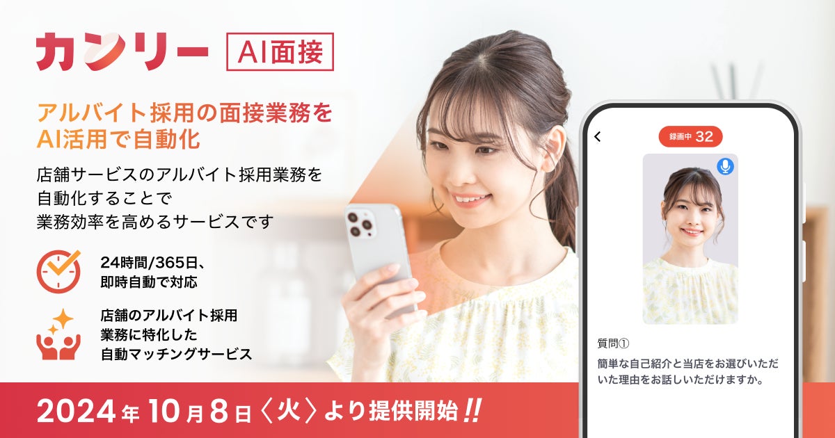 【飲食企業導入100社以上!】カンリーが採用領域に進出 0.1秒で面接が始まり、1秒で面接合否判定 アルバイト採用の自動マッチングサービス「カンリーAI面接」を10月8日(火)より提供開始