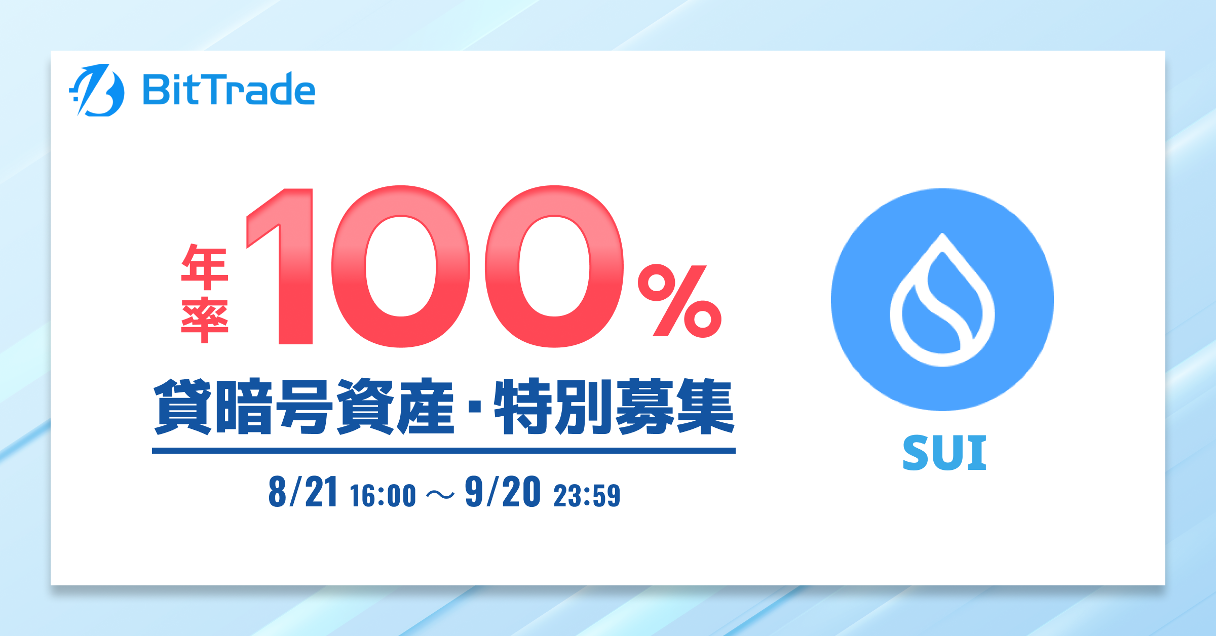 ビットトレード:【年率100%*】スイ(SUI) 貸暗号資産特別募集のお知らせ
