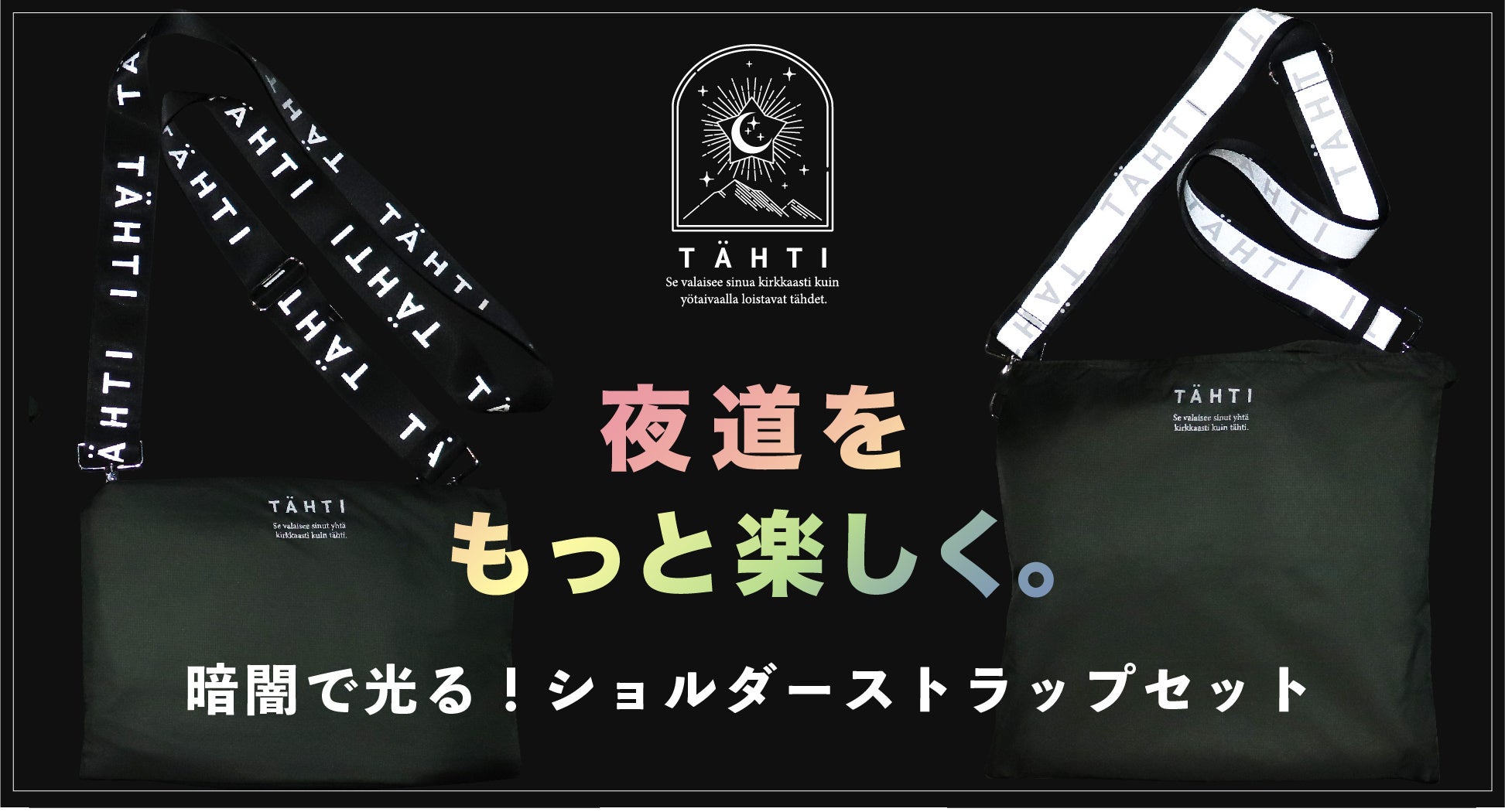 オリジナルブランド『TÄHTI -タハティ‐』とは、暗い夜道で光り輝き「あなたの存在」を知らせてくれる、リフレクター機能のついたバッグコレクションです。外出する機会も増え、「夜道を歩いていたら、車が来てヒヤッとした」「両手が塞がってしまい、とっさに行動が取れない」「バッグ自体が重くてクタクタに疲れてしまう」という経験から、夜道の移動を安全快適に過ごせて、オシャレに身を守れる商品の開発をスタートしました。