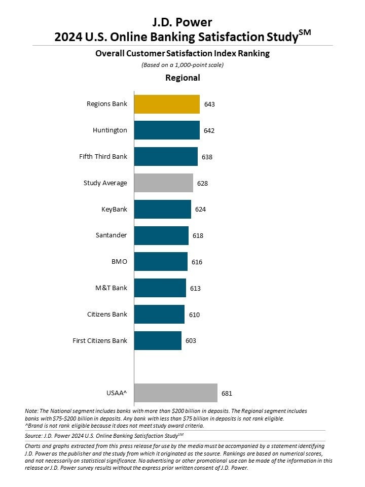 第1位:Regions Bank(リージョンズ・バンク)(643ポイント)