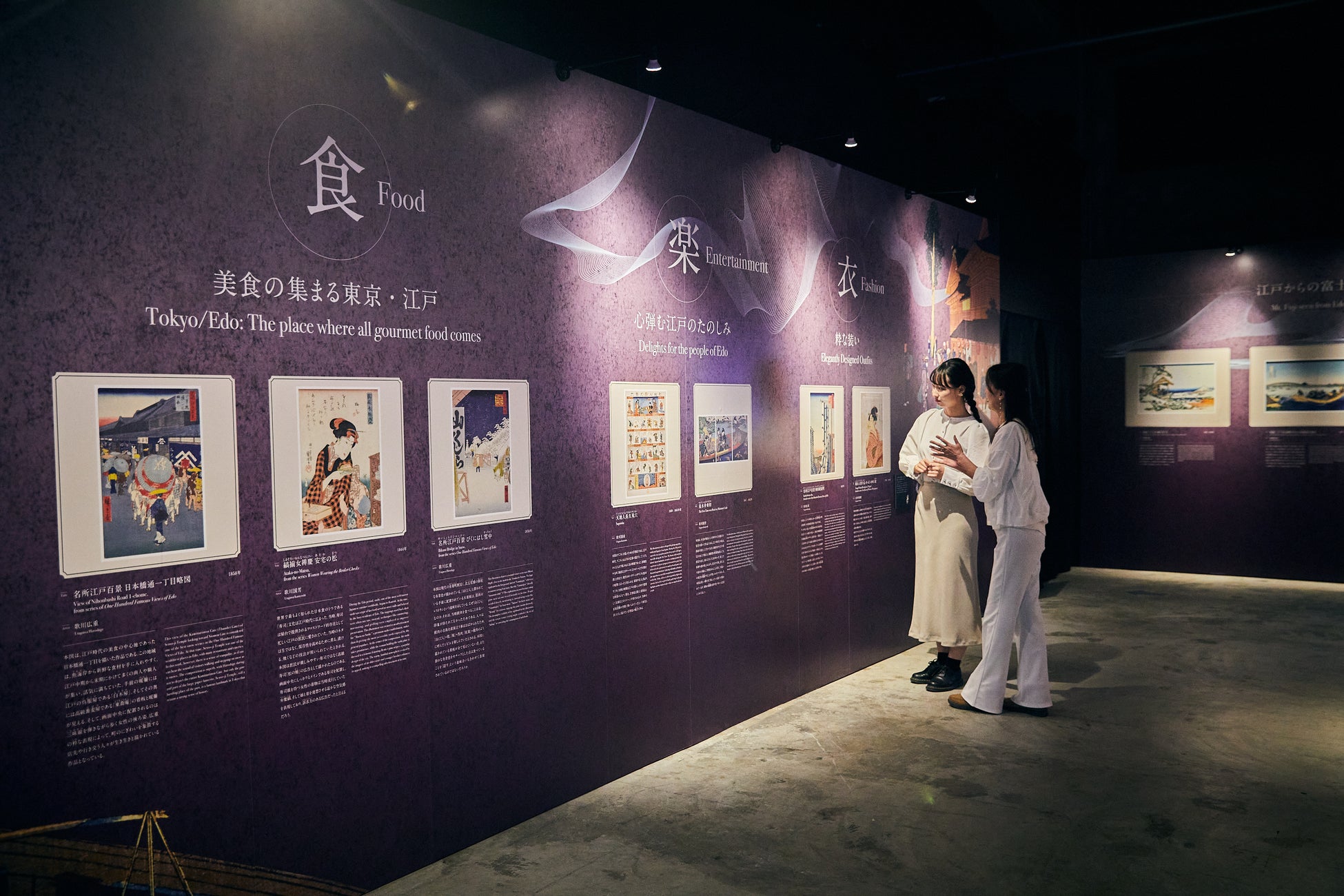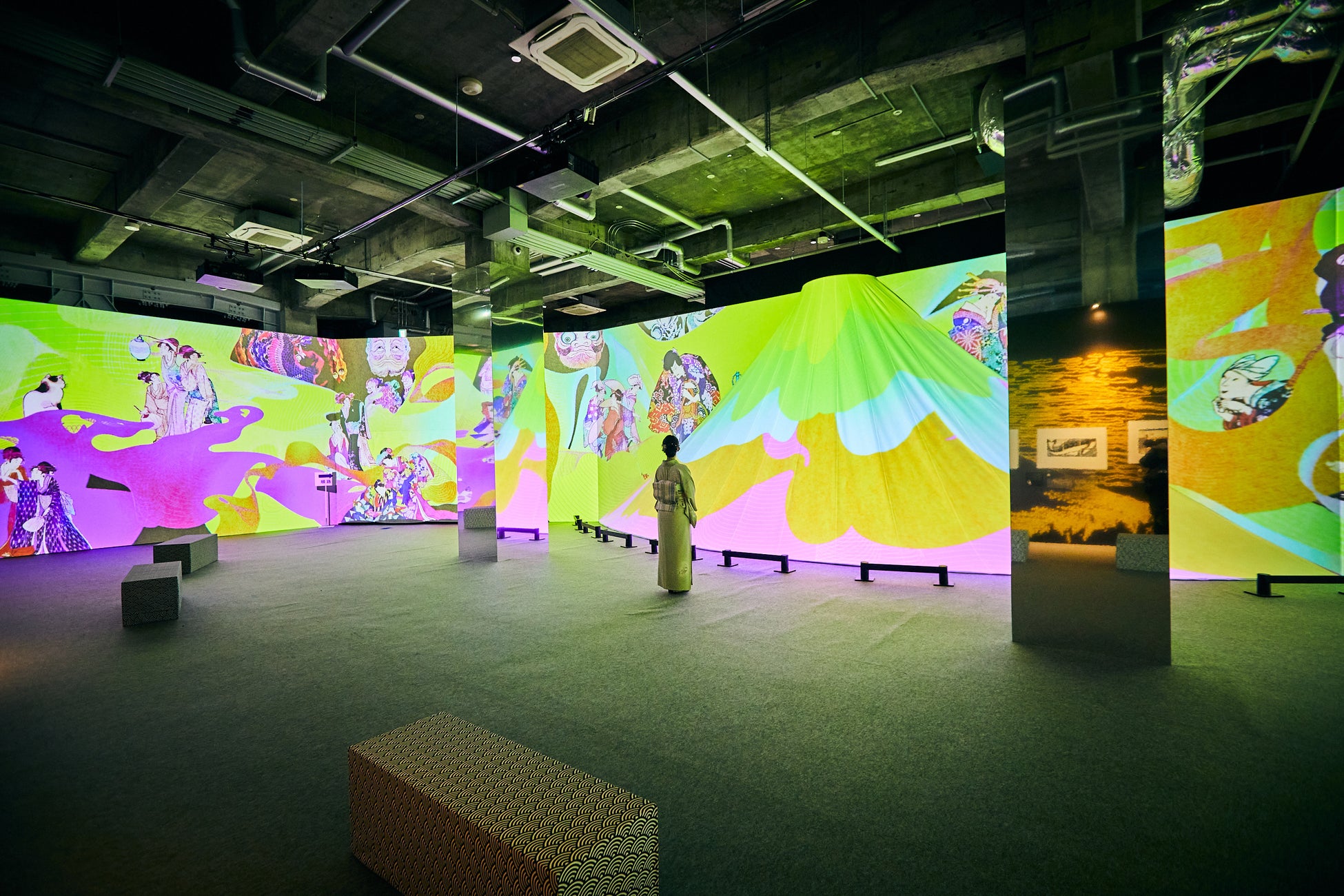 葛飾北斎、歌川国芳、歌川広重、喜多川歌麿、東洲斎写楽、歌川国貞など世界的な浮世絵師の作品300点以上をもとに、3DCGアニメーションやプロジェクションマッピングを駆使して大人から子どもまで楽しめるグラフィカルなデジタルアート作品として描き、9つの立体映像空間で浮世絵の世界に没入できるイマーシブ体感型デジタルアートミュージアムです。デジタル展示に加え、江戸時代に刷られた著名な浮世絵や復刻版の浮世絵も展示し、浮世絵の歴史や江戸の文化、浮世絵師たちについて解説します。