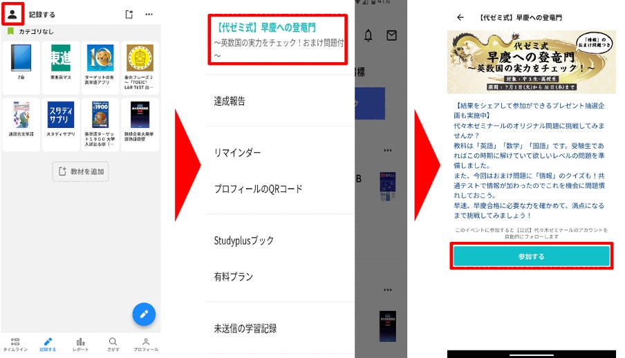 「代ゼミ」 × 「Studyplus」キャンペーン『代ゼミ式 早慶への登竜門』7月1日からスタート~英数国の実力をチェック!おまけ問題付~
