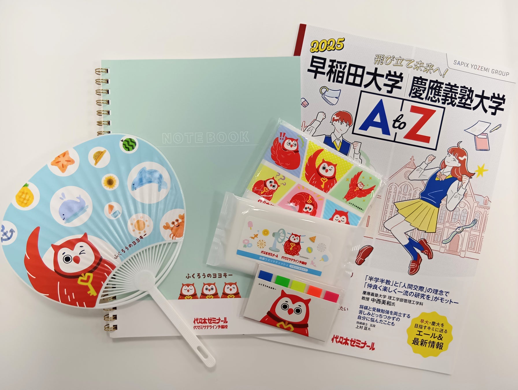 フォロワーかつ、期間中にクイズ結果をタイムラインにシェアしていただいた方の中から抽選で30名様に、『勉強に役立つ代ゼミオリジナルグッズ』をプレゼントします。(早慶AtoZとは、早慶を目指すあなたに送るエール&最新情報誌です)