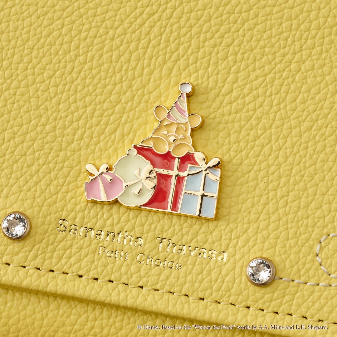「プーさん」と仲間たちが楽しそうにしている様子のお祝いムード溢れるアートをデザイン。「プーさん」の愛らしいシルエットが金具モチーフやアイテム全体に表現されたキュートなラインナップにも大注目。