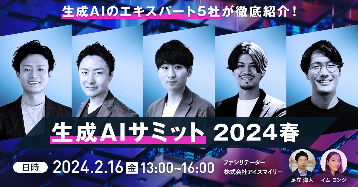 【2/16開催】AIsmiley生成AIサミット2024春~新年度は生成AIをビジネスにどう取り組むべきか、生成AIのエキスパート5社が徹底紹介!~
