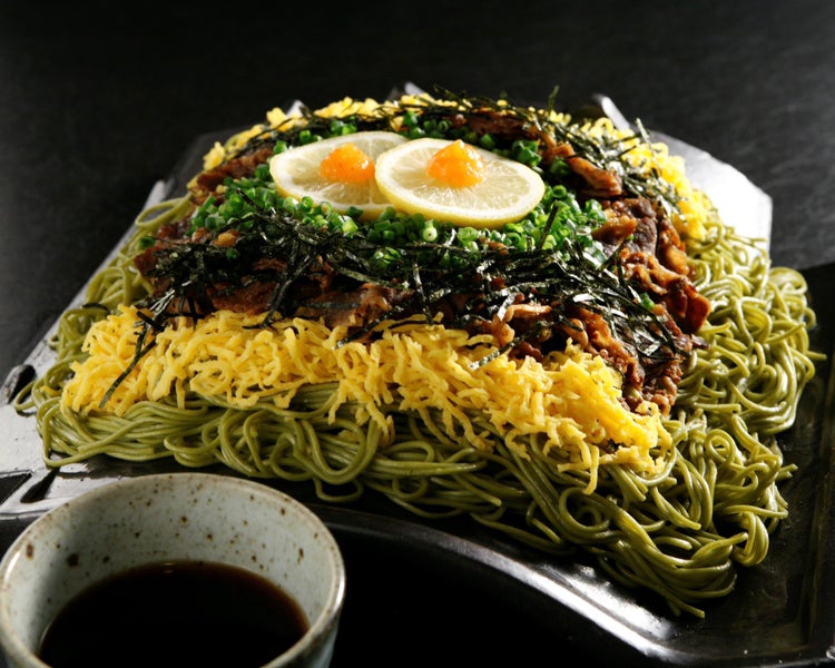 抹茶を使用した蒸し麺とほどよく甘みのあるつゆが人気の一品。