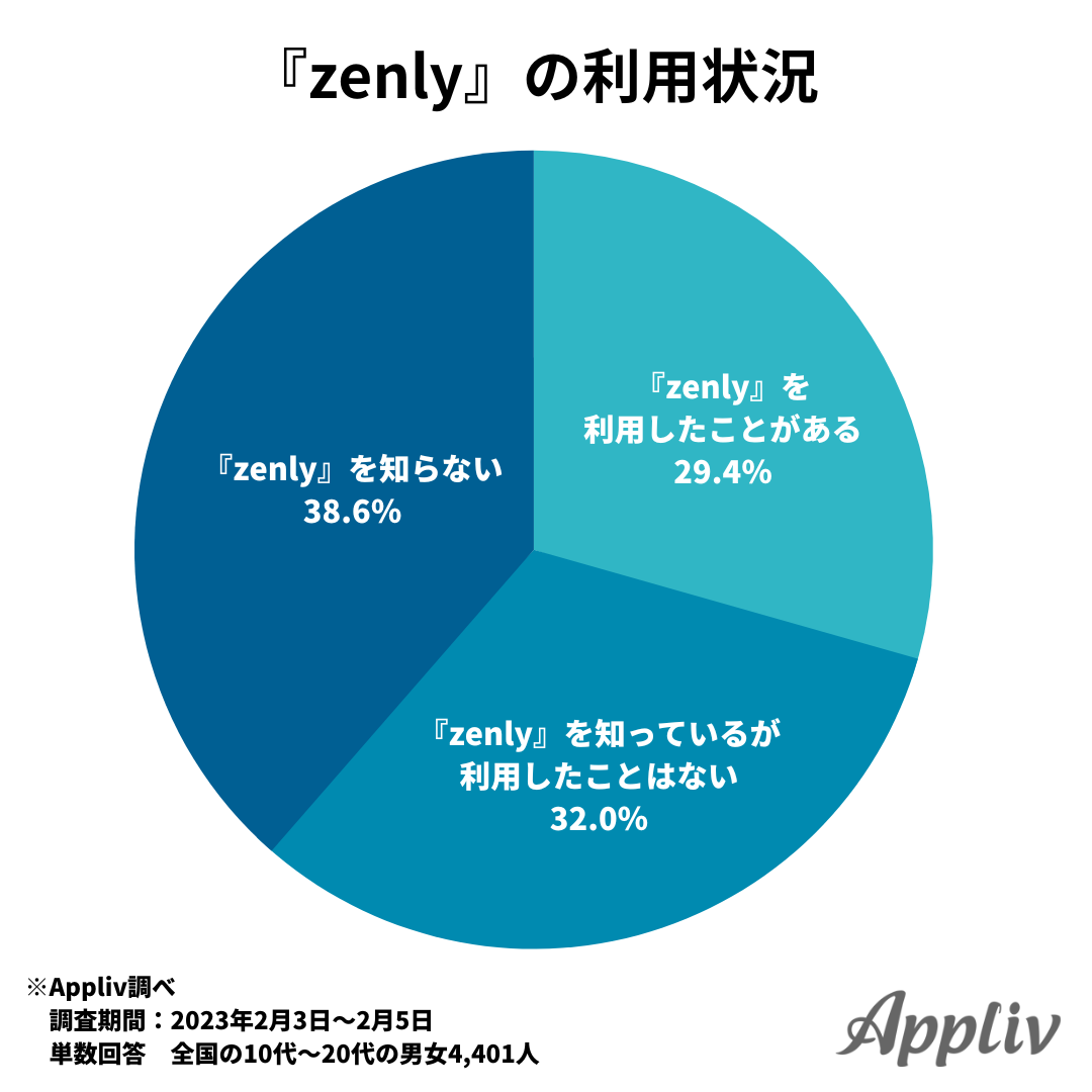 『zenly』のサービス終了直後に行った、全国の10~20代の男女4,401人を対象にした事前調査によると、『zenly』を利用したことがある人は全体の29.4%でした。