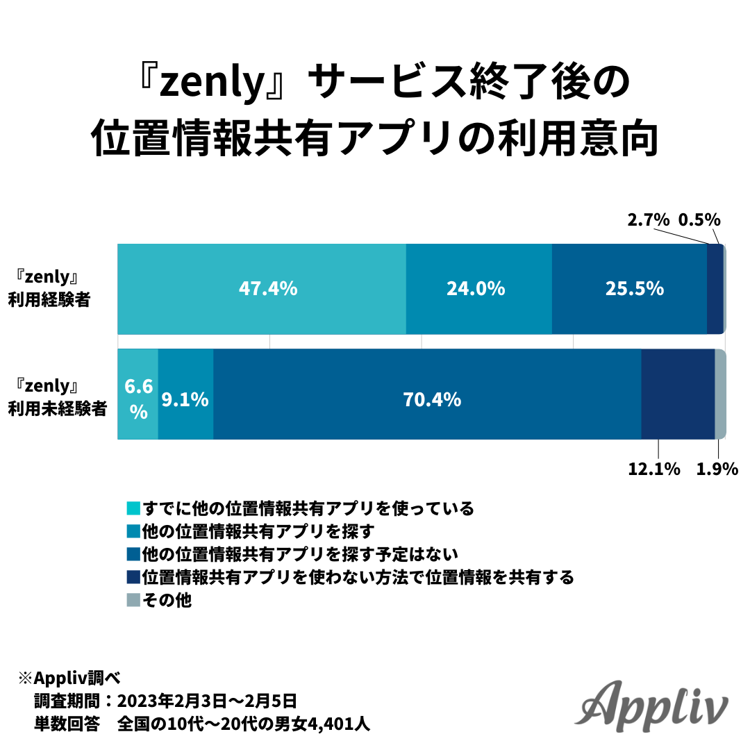 ユーザー同士で位置情報を共有できるアプリ『zenly(ゼンリー)』が、2023年2月3日をもってサービスを終了しました。Applivでは全国の10~20代の男女にアンケート調査を実施。利用経験の有無やユーザーの動向に加え、zenlyのサービス終了直後から代替として利用している位置情報アプリに関する調査を実施しました。