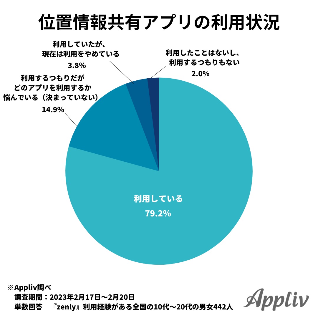 - 『zenly』終了後は、全体の79.2%が別の位置情報アプリを利用