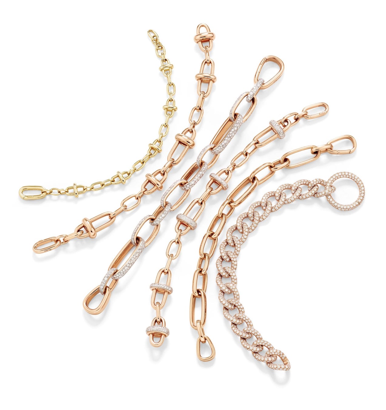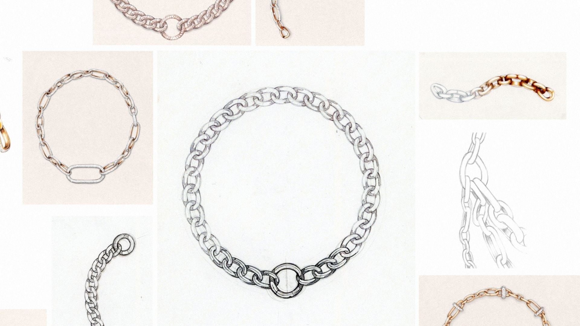 ラボリーニは大胆にも、脇役だったチェーンをジュエリーの主役へと昇華しました。彼が創り出したのは、ジュエリー以上のものでした。「ポメラート」そのものの本質、すなわち個性、躍動感、そして動くために生まれた存在でした。馬の体に沿う無数の不規則な円の模様が自然の傑作であるように、ポメラートのチェーンは硬質なゴールドを流れるような動きへと変貌させました。ひとつひとつのチェーンリンクは、斑点のように個性的でありながら全体と調和し、初期のチェーンは優雅な不規則性を讃え、職人の手仕事による有機的な美しさを体現しています。