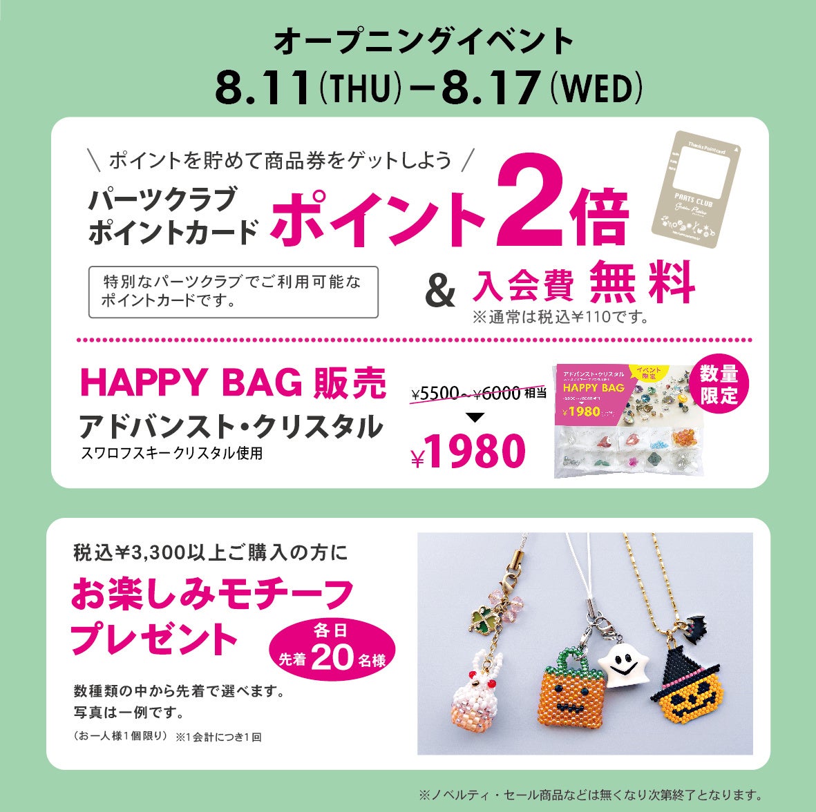 8/11(木)戎橋(大阪市中央区)にビーズ&アクセサリーショップ「PARTS CLUB」の新店舗がオープン!オープニングイベントを開催