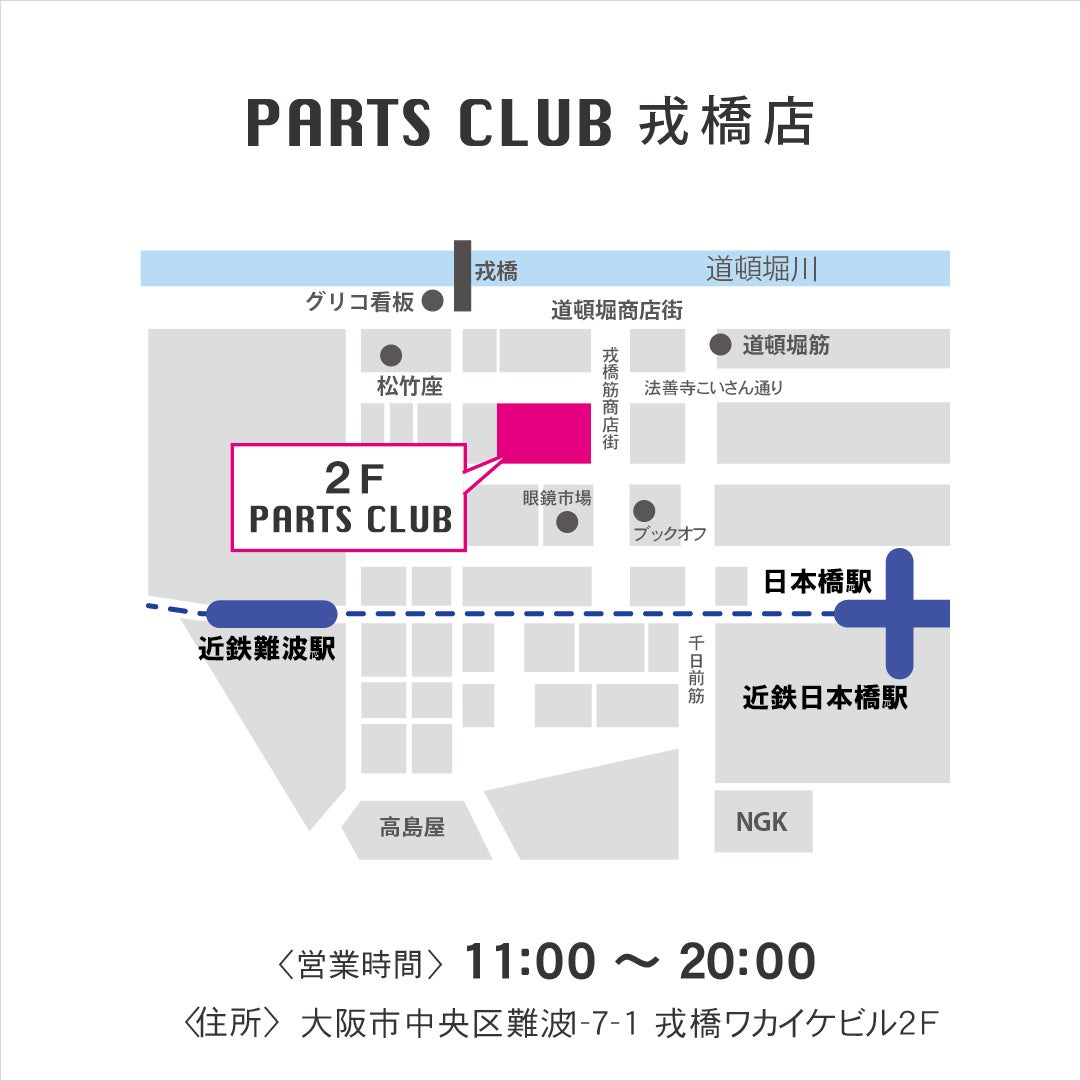 戎橋(大阪市中央区)に「PARTS CLUB」がオープンいたします。
