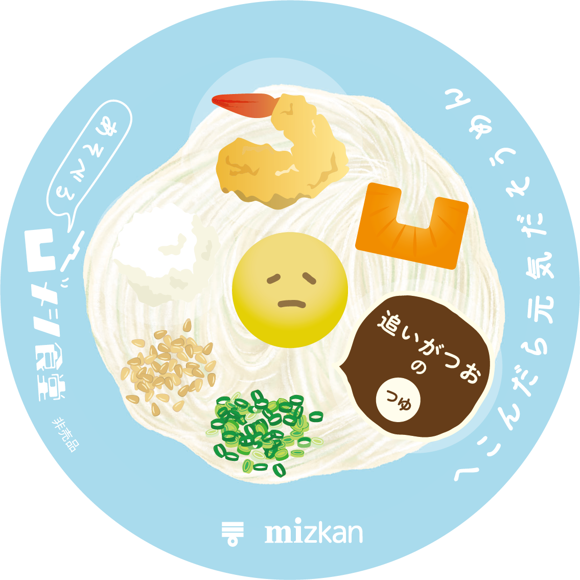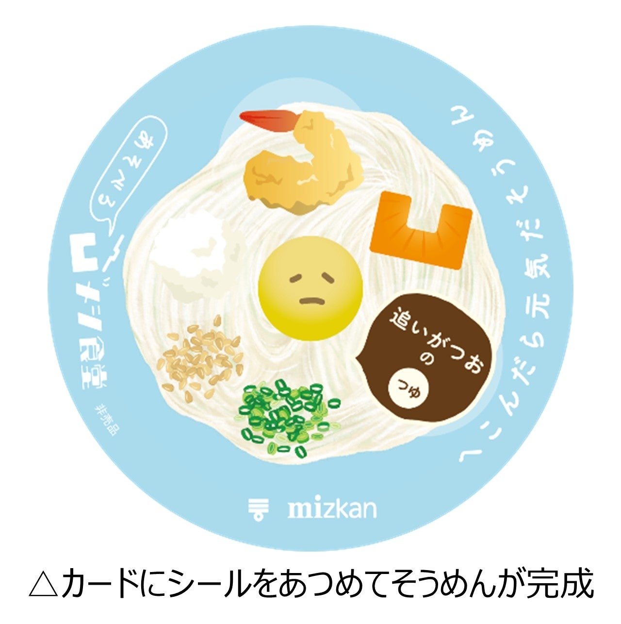景品は、自宅でもへこんだ気持ちをそうめんで癒してほしいという想いを込めて、本食堂で提供されている[追いがつお®つゆ2倍]、【大好きだし。麺と鍋。™シリーズ】より[クリーミーとんこつ][えび香る魚介だし][ほどよい旨辛キムチ™]からいずれか1種類を、オリジナル袋にいれてお持ち帰りいただけます。