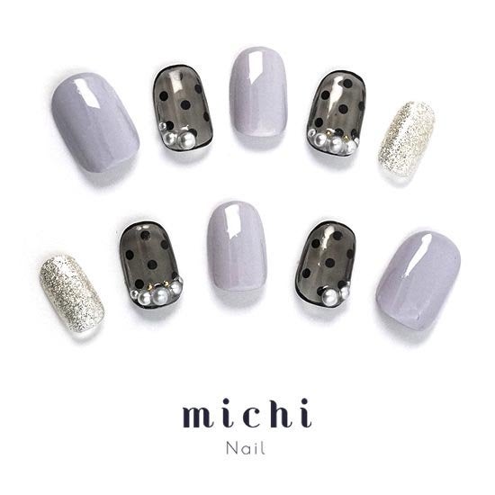 不動の人気シースルーネイルに新作が登場しました。クールな色合いとパールの組み合わせが絶妙にマッチしています。ラメでキラキラ感も十分です。モノトーンコーデと合わせたい大人の女性向けネイルチップです。