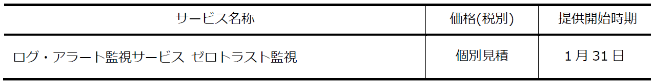 今回提供開始する「ログ・アラート監視サービス ゼロトラスト監視」の特長は以下の通りです。