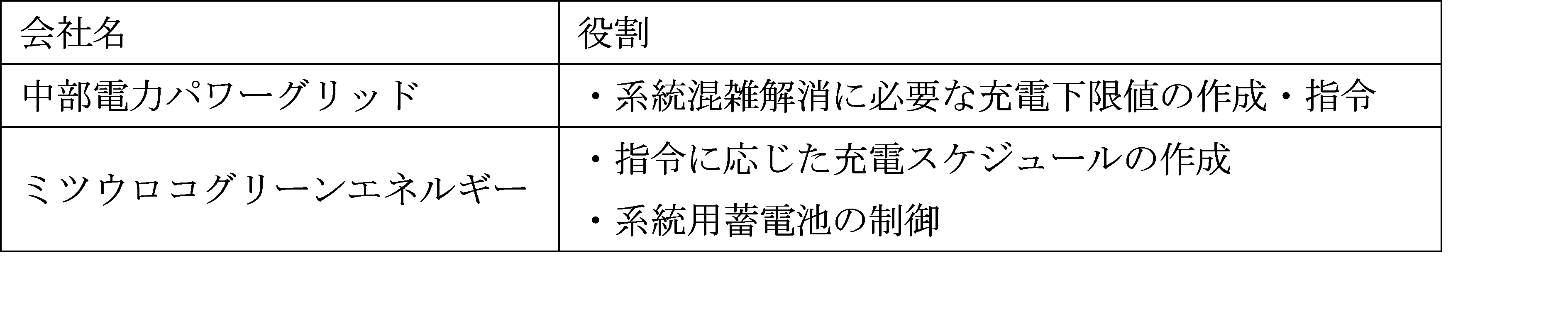 両社は、至近で電力系統への連系量が増加している系統用蓄電池に着目し、配電用変電所の系統混雑が発生する時間帯に系統用蓄電池へ充電することにより、系統混雑解消を図り、変電所の増強工事の回避または既存設備の延伸的運用による設備投資コストの低減を目指す実証試験を開始しました。本実証試験では、系統混雑が発生する時間帯を想定し、中部電力パワーグリッドがミツウロコグリーンエネルギーの所有する系統用蓄電池を活用することで、系統混雑解消の実現性や課題を検証します。