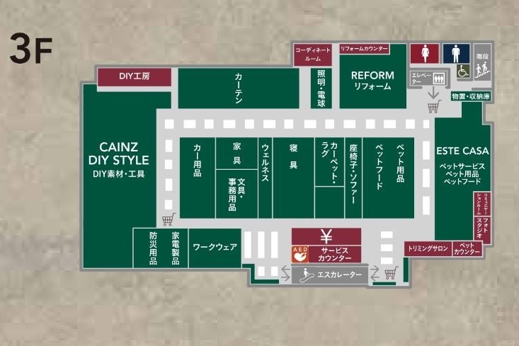 西友福生店の食料品売り場に訪れるお客様がくらしの商品をワンストップでお買い求めいただけるよう、日ごろのくらしが楽しくなるような楽カジアイテムや日用雑貨、収納、インテリアなど、カインズでしか買えない高品質で価値あるオリジナル商品を、お求めやすい価格で提供します。また福生市やその近隣地域には、デイキャンプやバーベキューが楽しめる公園やキャンプ場が多数存在します。そうしたキャンプ利用者にもお買い求めやすいよう、実際の使用シーンをイメージした商品ディスプレイと、キャンプをしながら「食」へとつなげるアウトドア売り場の展開をしています。