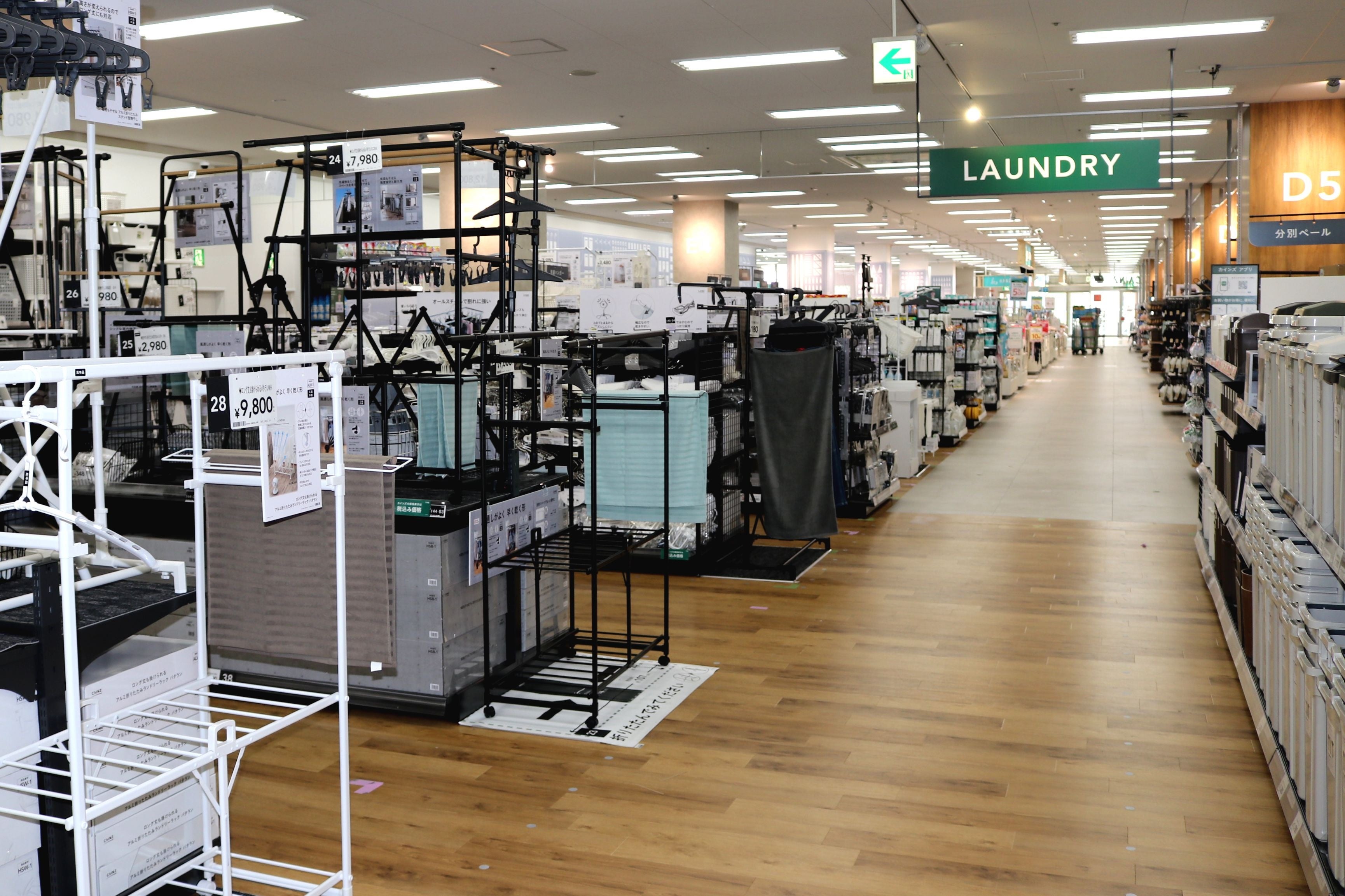 カインズ西友福生店は、JR青梅線 福生駅東口ペデストリアンデッキ直結の西友福生店の2階と3階に出店する店舗で、西友福生店で食品を購入されたお客様に日用品などのくらしの商品をワンストップでお買い物いただけるよう、売場づくりに反映しています。売場は、使う道具や手間を減らし時短もでき、家事がラクに楽しくなる「楽カジ CLEAN」、「楽カジ LAUNDRY」、「楽カジ KITCHEN」などカインズオリジナル商品を展開しているほか、カインズでは初となるカーテンフィッティングサービスを導入。お部屋空間に合わせたカーテンをはじめとする家具・インテリアの組み合わせがシミュレーションできるコーディネートルームを常設するなど、カーテンを楽しみながら選んでいただける場所を提供します。