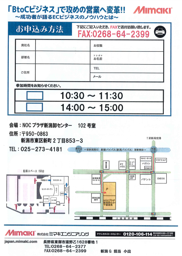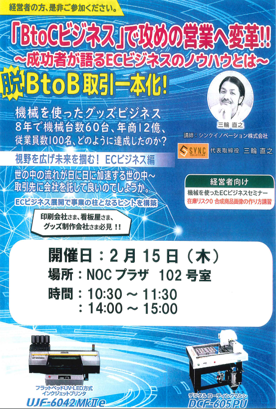 「B to C ビジネス」で攻めの営業へ!ECビジネスのノウハウをお伝えさせて頂きます。シンクイノベーション株式会社 代表取締役 三輪直之 自らがNOCプラザ新潟卸センターで講演を致します。