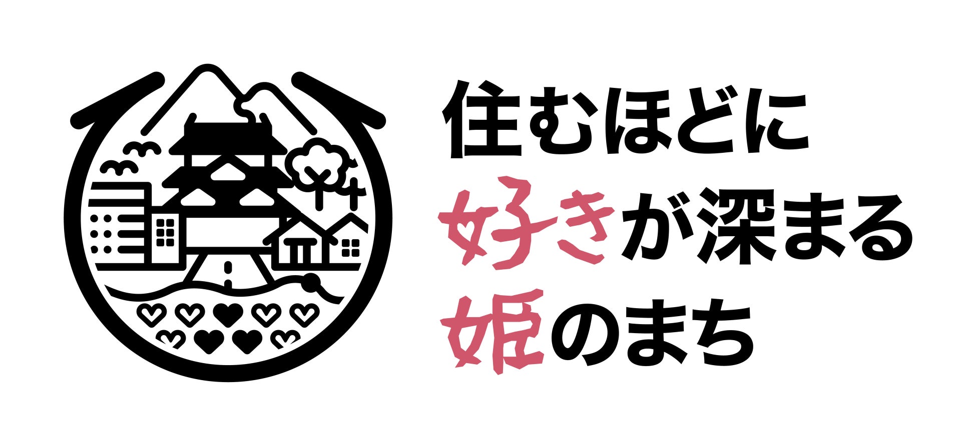 このたび新たに作成した姫路市のブランドメッセージ「住むほどに“好き”が深まる“姫”のまち」が本年度のテーマです。