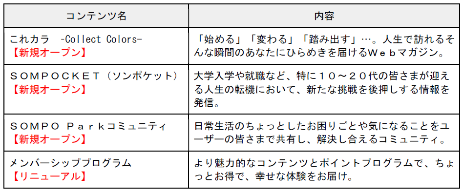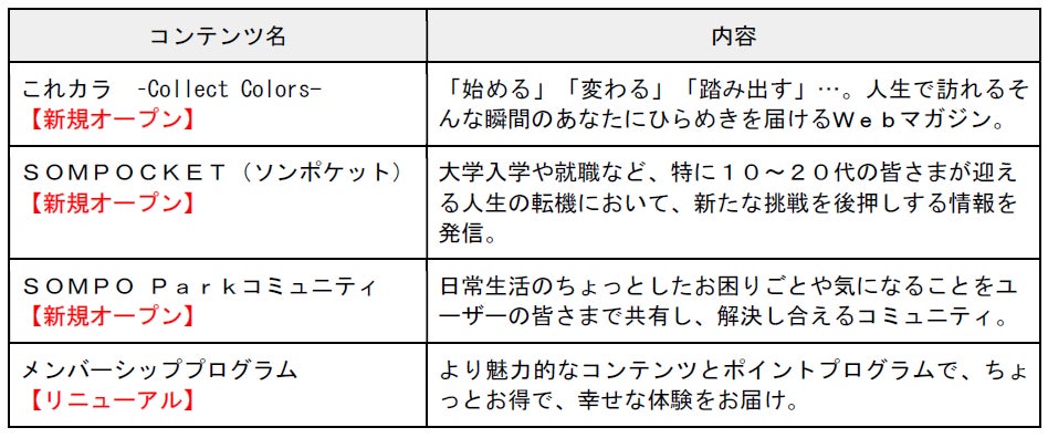 SOMPOグループのパーパスである「安心・安全・健康のテーマパーク」を実現するための基盤として、よりお客さまの人生に寄り添い、お客さまの日常生活に役立つ有益な情報を発信していきます。