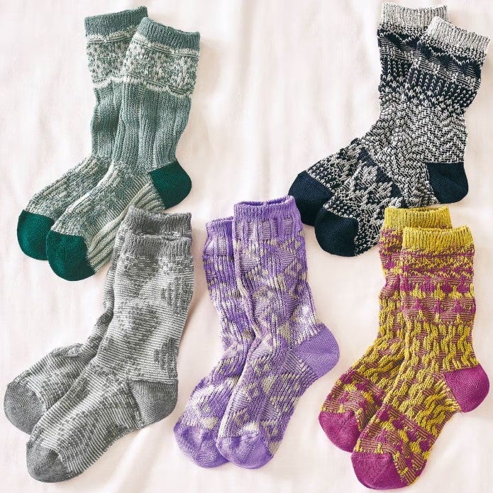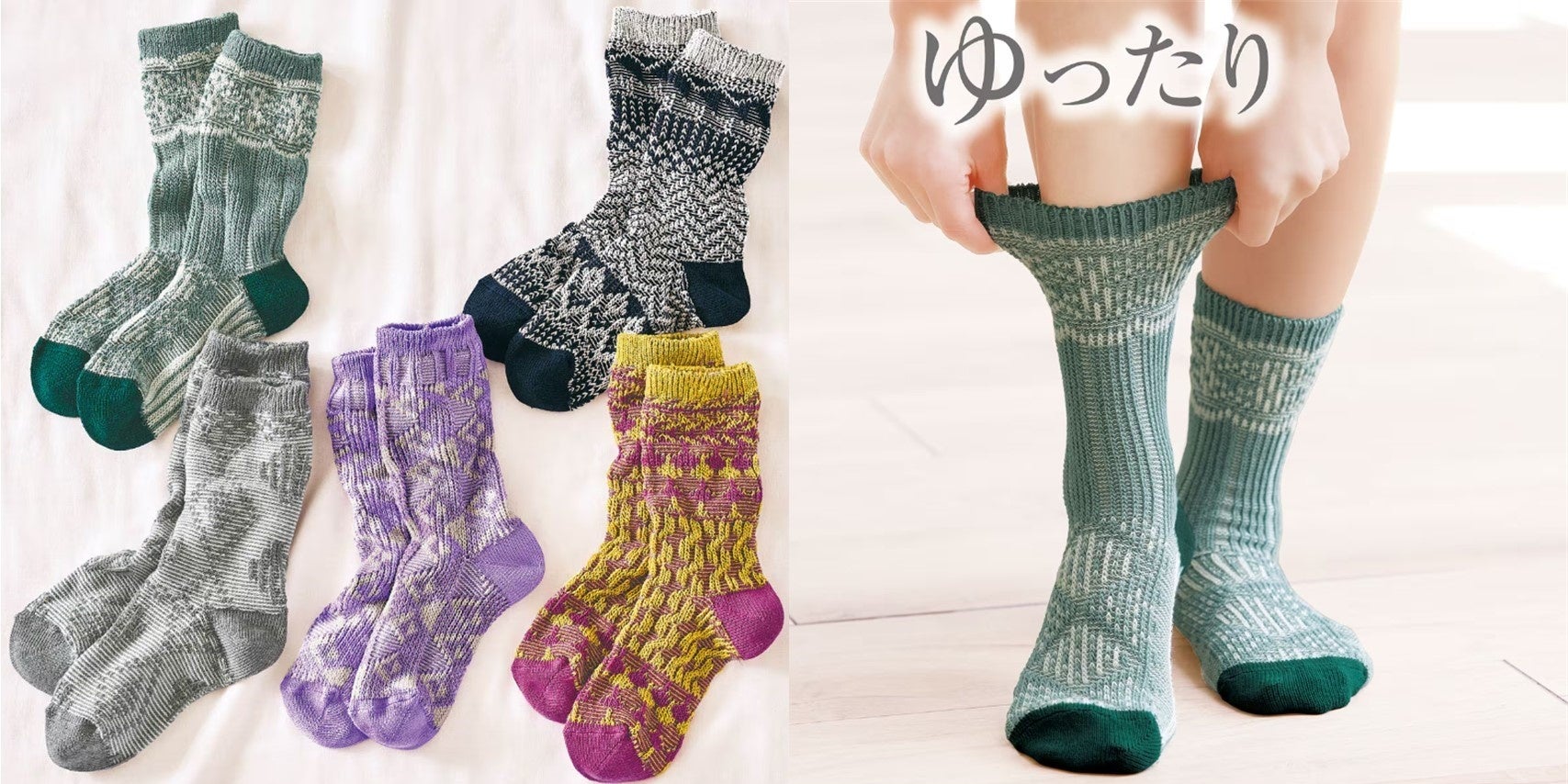 足元から春を先取り!綿混でふんわり、履き心地はやわらかい『ゆったり履ける綿混ジャカード編みソックス』がセシールから新発売。