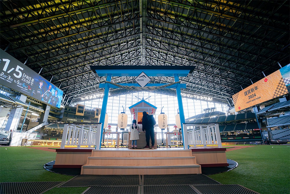 2025年1月1日(水・祝)~5日(日)まで、昨年1万人以上が参拝した「ES CON FIELD神社」が登場します。普段はスタジアムツアーでしか入ることができないフィールドで、ファイターズの勝利を祈願した黄金色の「VICTORYしゃけまる」に必勝祈願や合格祈願、商売繫盛などのお願い事をしてみてはいかがでしょうか。
