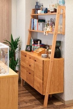 ハイタイプでありながら圧迫感のないフォルムのキャビネット。