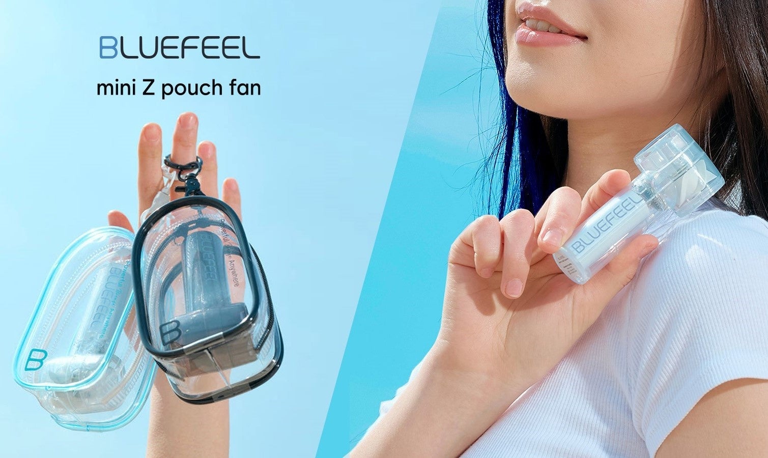 BLUEFEEL、バッグに映える!たった10cm超小型&15m/s強風「ミニ Z ポーチファン」Makuake開始