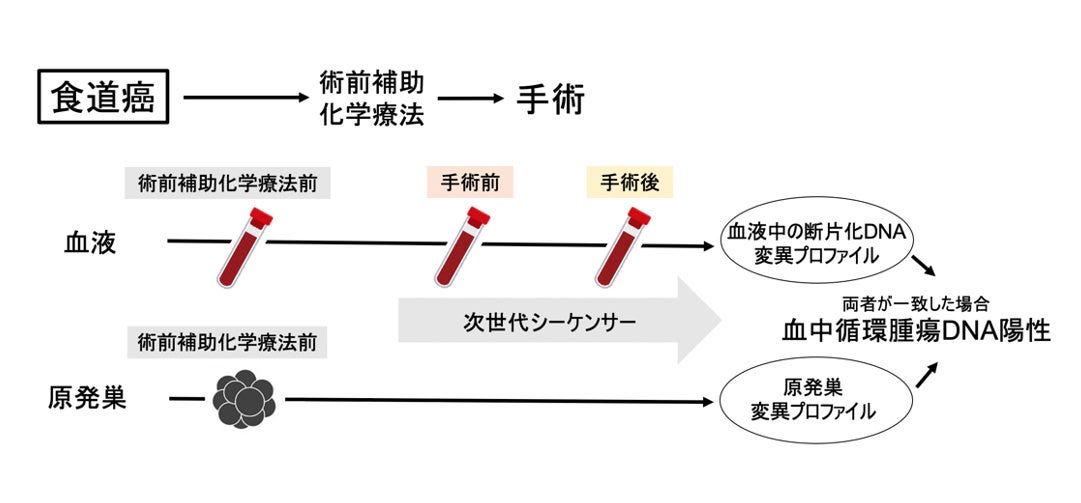 慶應義塾大学医学部外科学教室(一般・消化器)の小林亮太助教、松田諭専任講師、川久保博文准教授、北川雄光教授、がんゲノム医療センターの中村康平専任講師、西原広史教授らの研究グループは、食道癌原発巣と血液中の遺伝子変異を照合する診断技術(リキッドバイオプシー)を用いて、手術前の血液中から食道癌由来の循環腫瘍DNAを検出することにより微小残存病変(MRD)の有無を判定し、食道癌の予後を予測できることを発見しました。この発見は、手術、化学療法、放射線治療が複雑に組み合わされる食道癌治療経過後の再発リスクを鋭敏に予測し、患者に応じた治療戦略を実現することにつながると期待されます。本研究成果は、科学誌European Journal of Surgical Oncologyに2025年1月21日付けでオンライン公開されました。なお、食道癌患者の手術後の血中循環腫瘍DNAの有用性については、科学誌Annals of Surgical Oncologyに2023年2月14日付けで先行して報告しています。