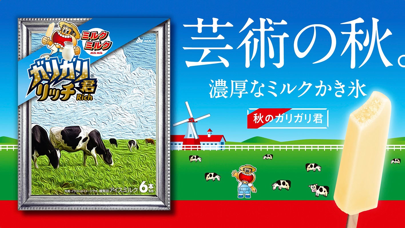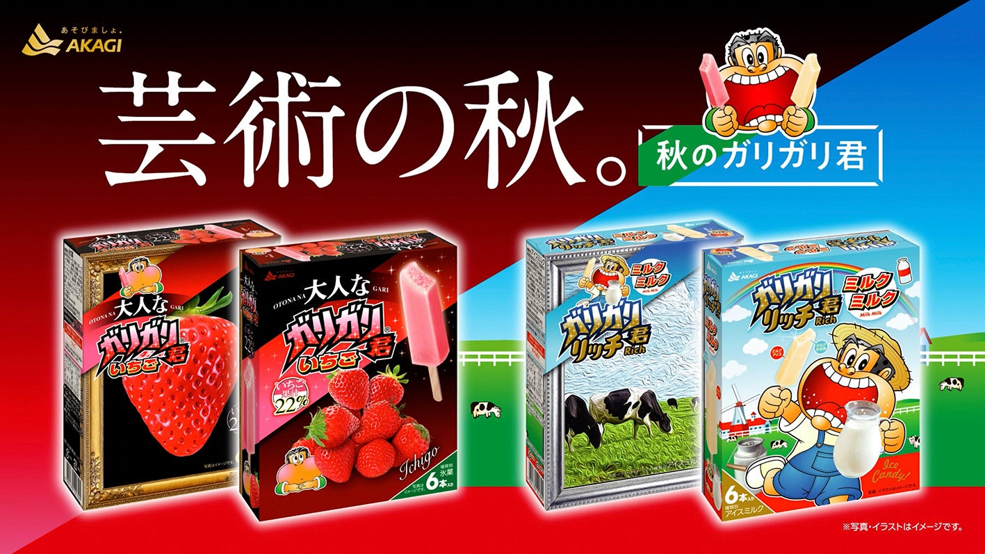 ガリガリ君に「芸術の秋」パッケージが登場!!「ガリガリ君リッチミルクミルク(6本入り)」「大人なガリガリ君いちご(6本入り)」2022年9月1日(木)より全国発売