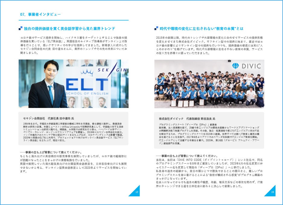 ・高単価・高付加価値なサービスが展開され、少ない生徒数でも収益を確保できるビジネスモデルが勃興するなど、ビジネスモデルの転換がみられた。