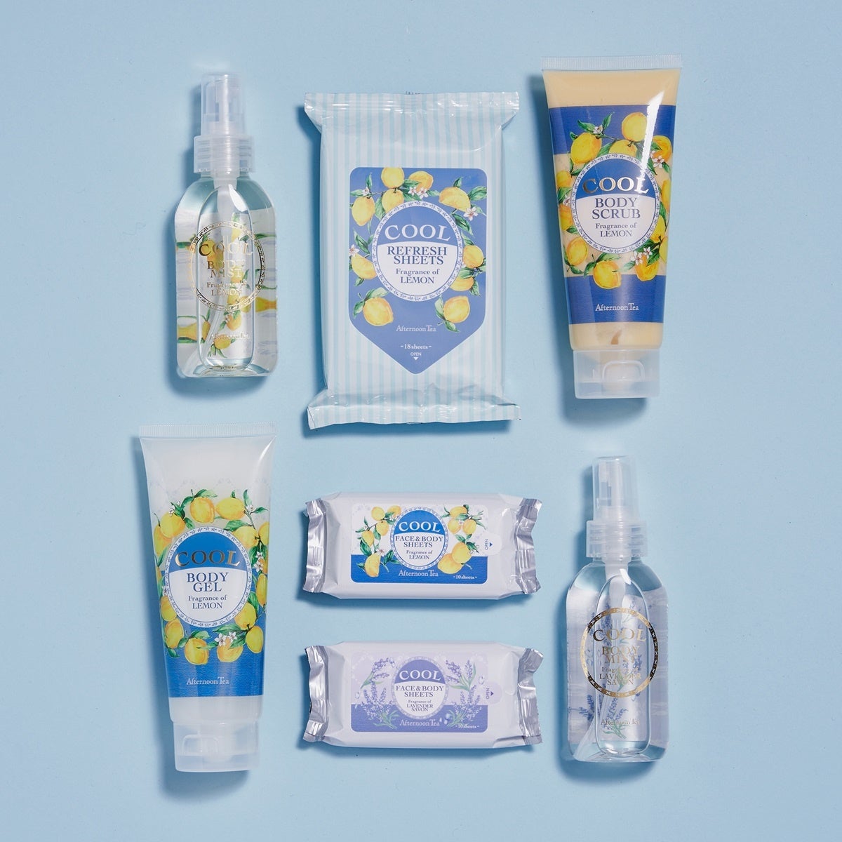 ボディミスト 各¥1,100、ボディシートM ¥440、ボディスクラブ ¥1,650、ボディジェル ¥1,430、ボディシートS 各¥220