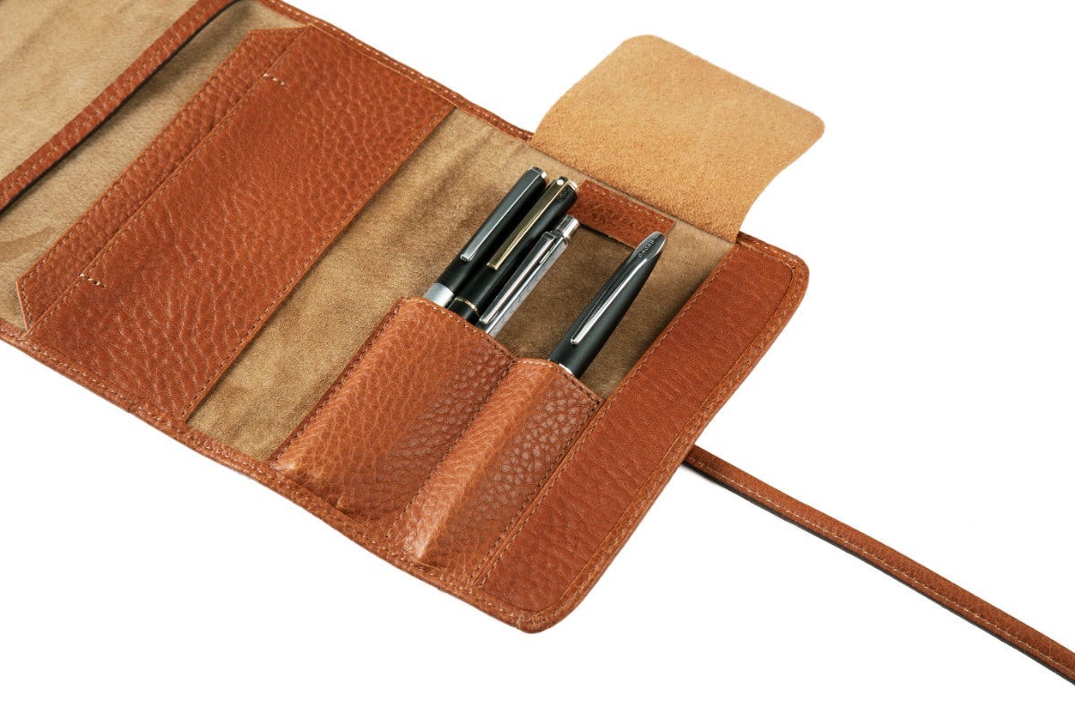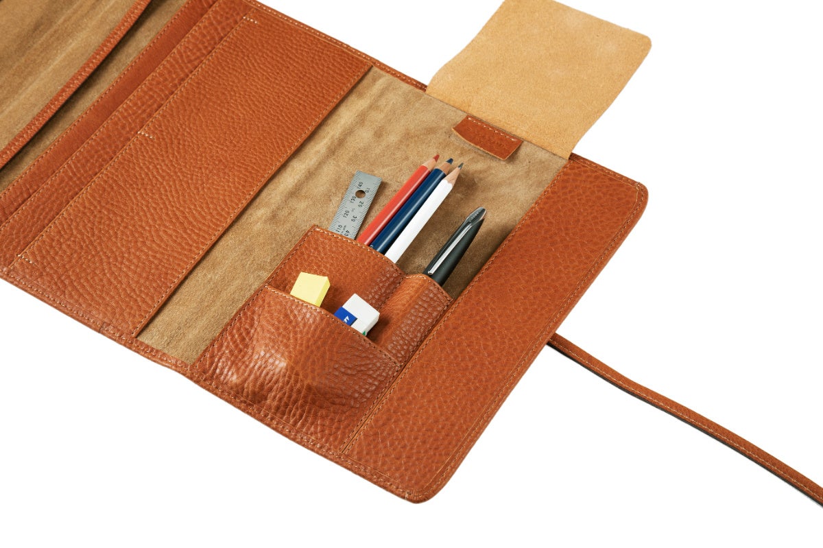 - 収納力に優れた、革紐を巻いて使う手帳カバー