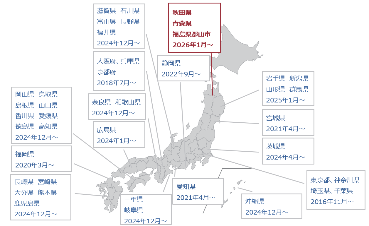 2016年に首都圏でサービス開始後、2026年には全国43拠点へ拡大
