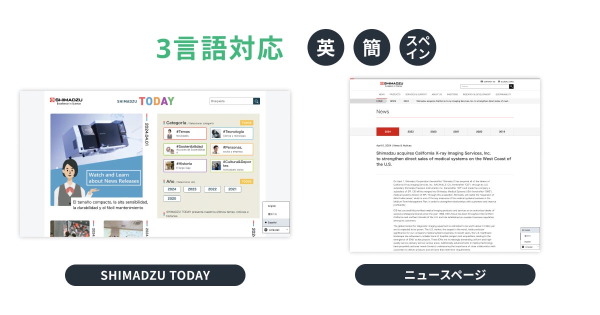 島津製作所が運営する下記ページを、英語を元言語として簡体字とスペイン語に展開しています。