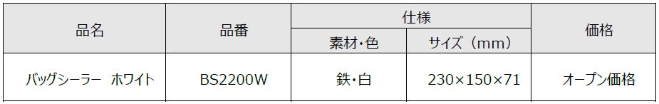 軽い力で簡単に封止め作業ができる 「バッグシーラー ホワイト」新発売
