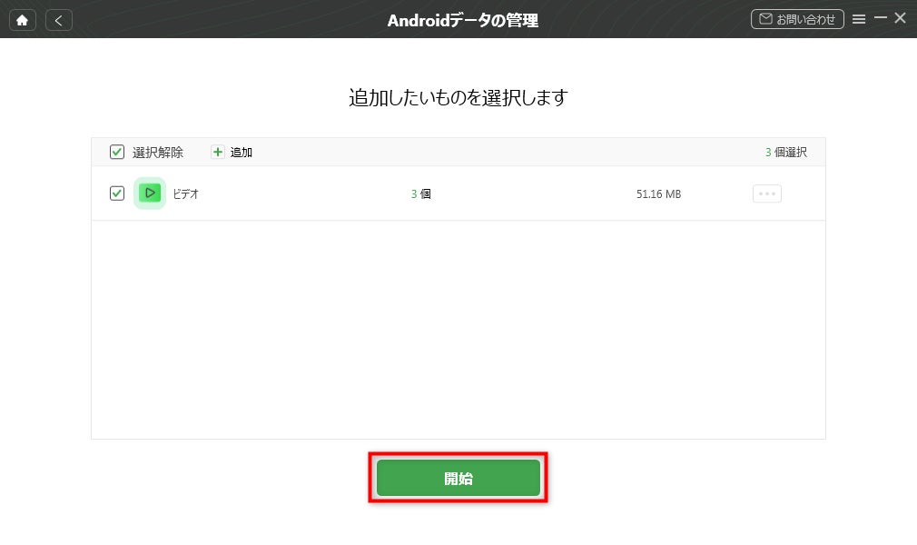 ステップ2、ケーブルでスマホをパソコンと接続し、「コンテンツの追加」を選択します。