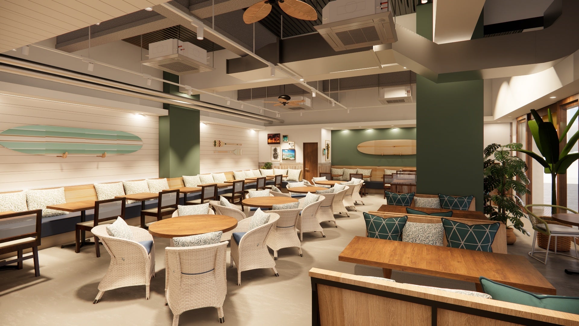 ローカルハワイの心地よさをイメージした店内は温もりあふれる開放的な空間で、看板メニューのパンケーキやエグスンベネディクトなどハワイアン料理を多彩にご用意しております。さらに、スタジアム内に位置する当店は、スポーツ観戦をしながら楽しめるグルメスポットとしてもおすすめです。試合の熱気を感じながら味わう「ハワイアンスタジアムグルメ」は格別。トロピカルな雰囲気を感じながら美味しさとともに興奮と感動を分かち合う特別なひと時をお届けします。