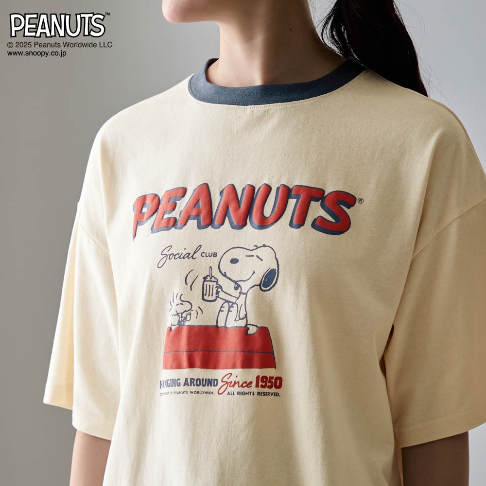商品名/【PEANUTS75周年】 ヴィンテージ風デザインの発泡プリントTシャツ 「スヌーピー」