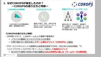 今回の発表会では、どのような方々に「COROPS」をご活用いただけるのかを中心に概要や期待される効果、今後の展開について説明(解説)しました。
