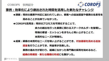 最後に、小野からCOROPSを活用して組織が改善した具体的な事例を紹介しました。