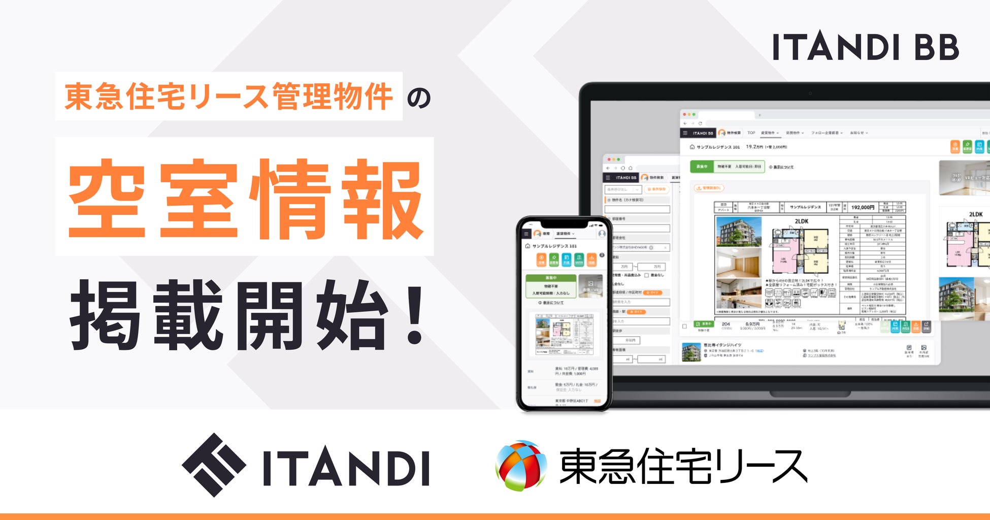 イタンジの不動産業者間サイト「ITANDI BB」に東急住宅リースが空室情報を掲載開始