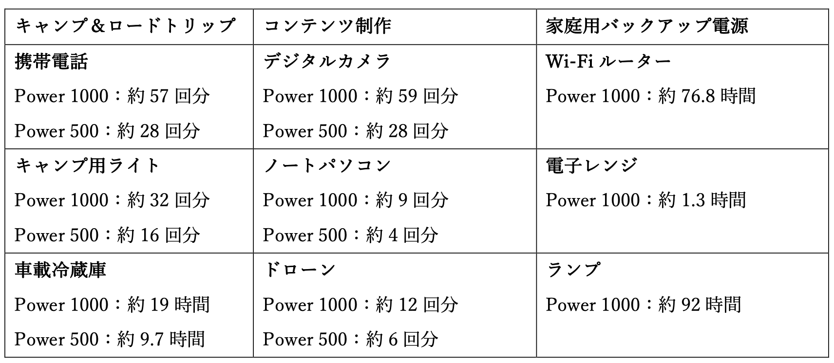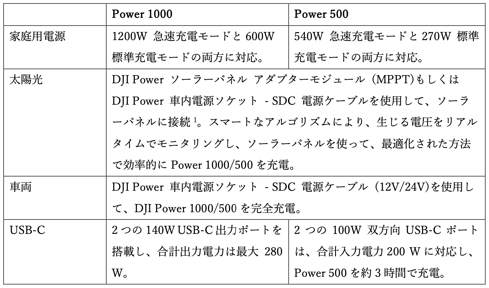 [1] 本ページ記載の全データは、制御された環境下にて、DJI Power 1000、DJI Power 500の製品版モデルを使用して測定した値です。詳細については、https://www.dji.com/jp/power-1000、https://www.dji.com/jp/power-500でご確認ください。