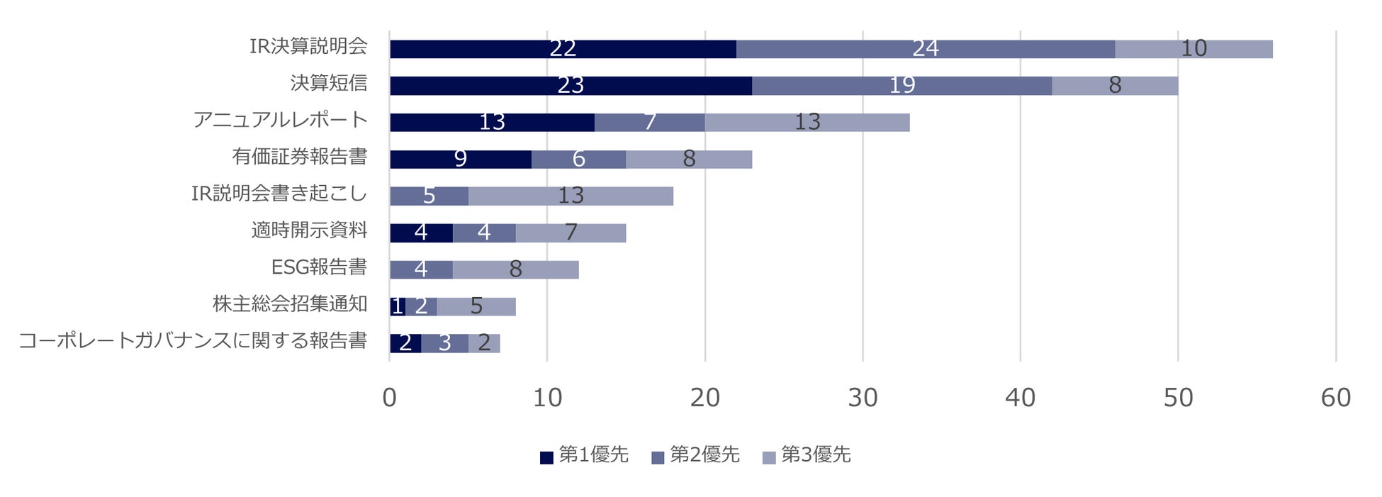 【図4】⽇本の上場会社が優先的に英文開示に取り組むべきと考える開示資料の上位3つと、その理由について