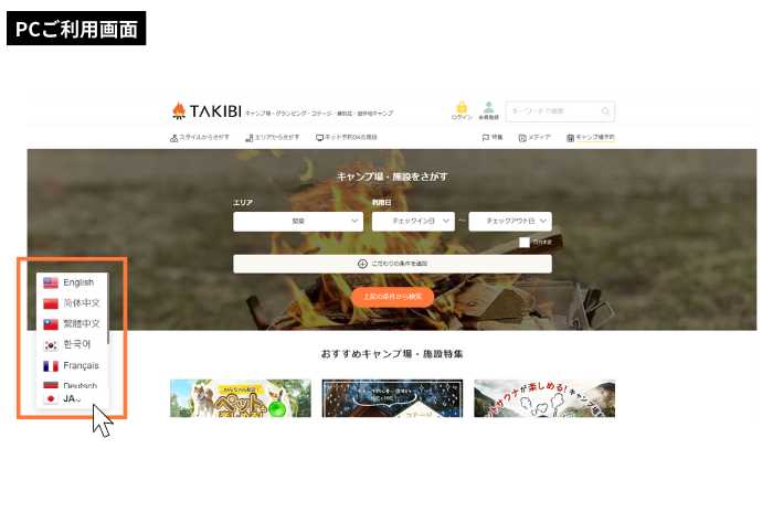 キャンプやグランピングを中心としたアウトドア予約サイト「TAKIBI」の運営をおこなう株式会社フォーイットは、「TAKIBI」の多言語対応を7月11日より開始いたしました。