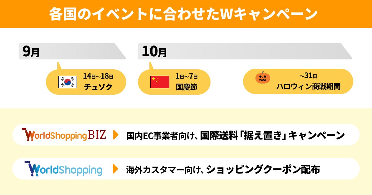 さらに、繁忙期に中国や韓国の大型連休が重なり、世界的に秋冬に向けた購買意欲が高まる時期であることからWorldShoppingではカスタマーに向けて最大2,000円の割引を行うキャンペーンを実施いたします。
