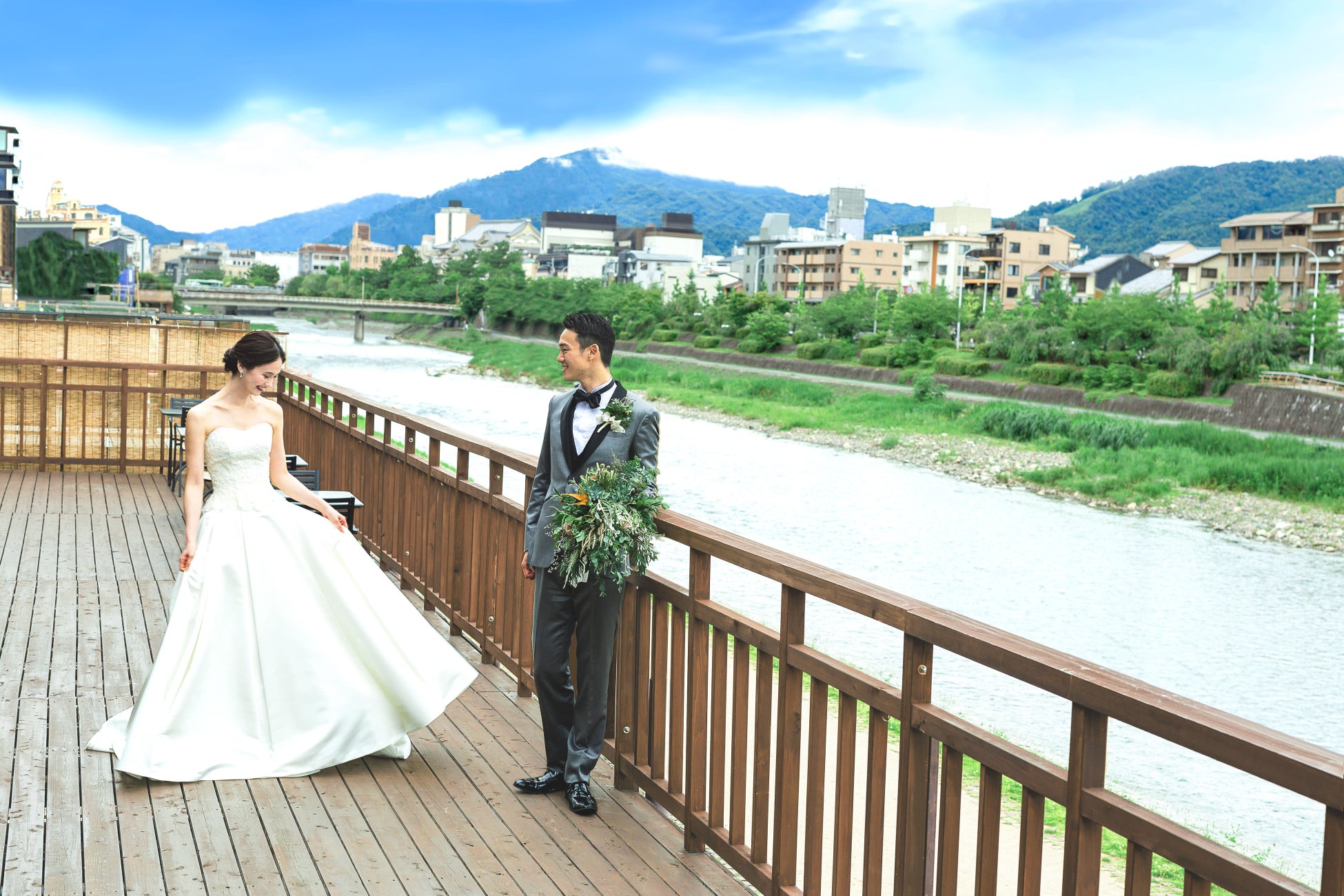 この度、京都そして鮒鶴ならではの体験をさらに味わっていただき、一生の記憶に残る結婚式にしてほしいという想いで、これまで夏季のレストラン営業でしか開放していなかった川床をご利用頂ける夏季限定のウェディングプランをご用意いたしました。