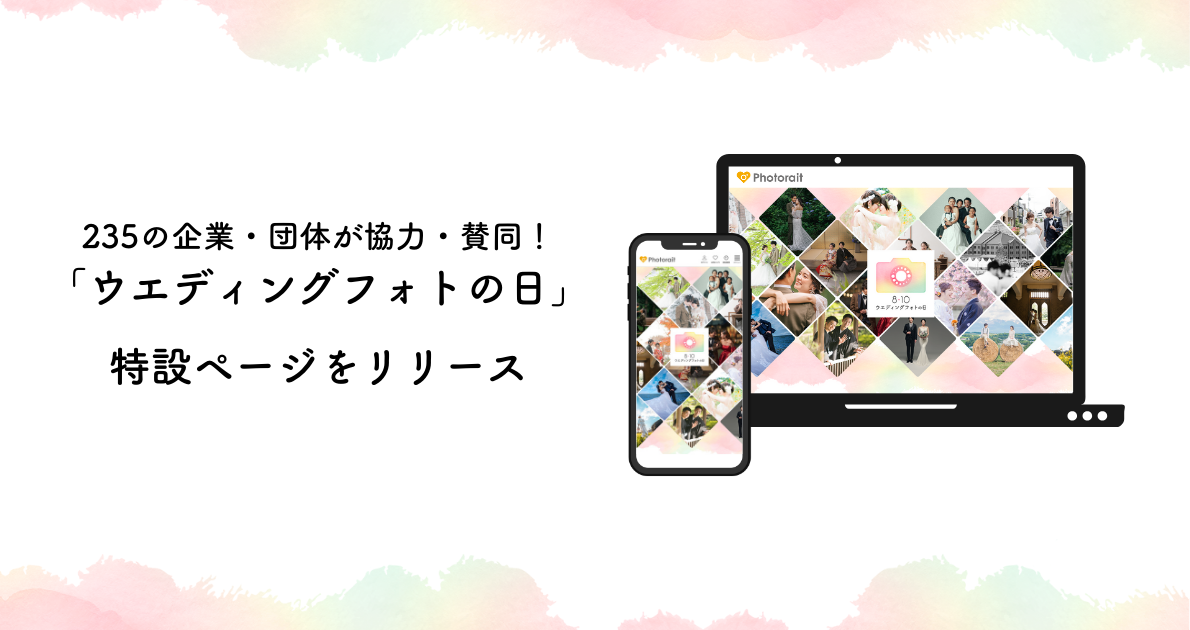 株式会社ウエディングパーク(本社:東京都港区、代表取締役社長:日紫喜 誠吾)が運営するフォトウエディング・前撮りのクチコミ情報サイト「Photorait(フォトレイト)」は、「ウエディングフォトの日」プロジェクトに、235の企業・団体に協力・賛同いただきました。