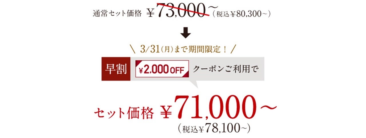 早割2,000円OFF+配送サービス2,000円OFFクーポンプレゼント